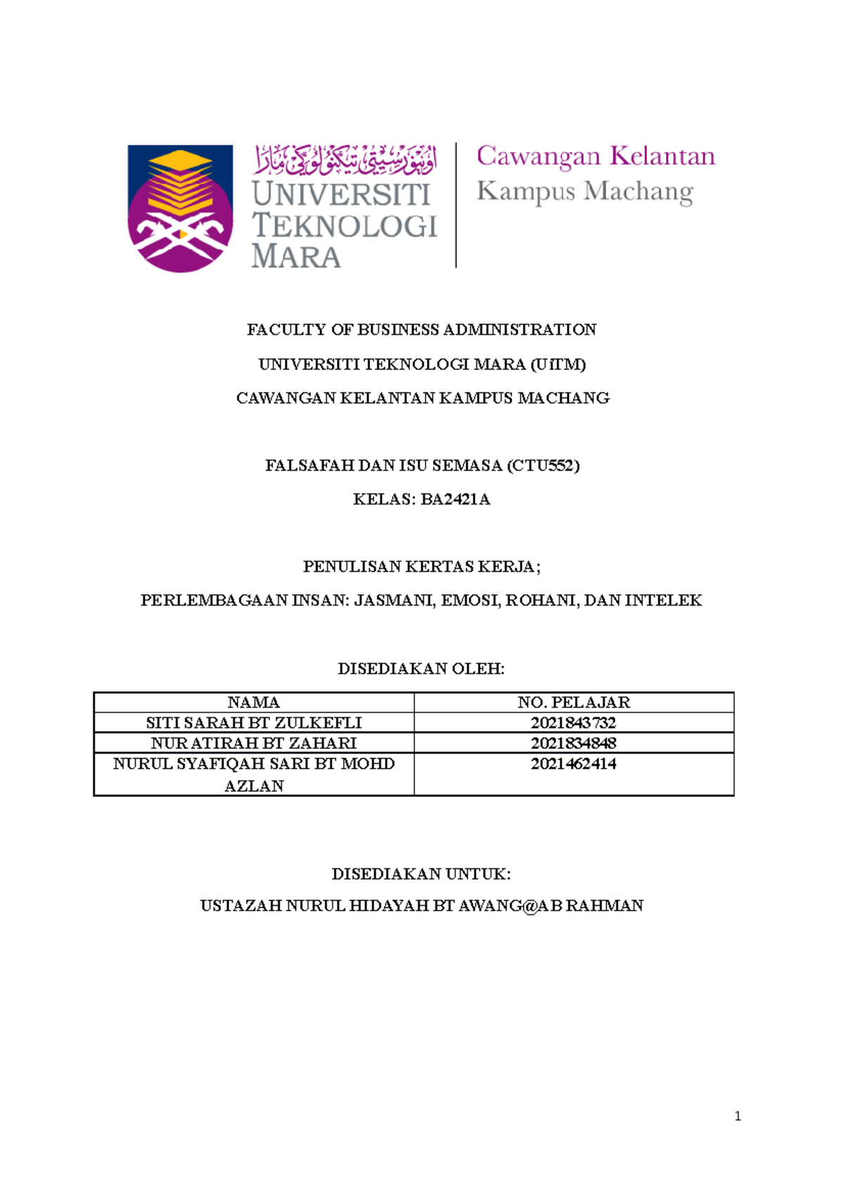 Kertas Kerja Ctu552 Perlembagaan Insan Falsafah Uitm Studocu